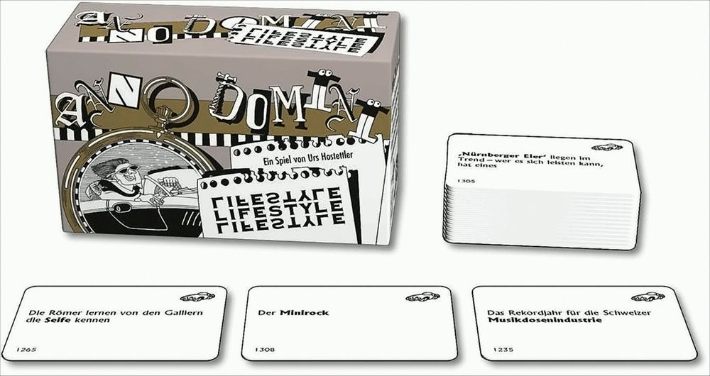 Die ANNO DOMINI Serie besteht inzwischen aus über 30 verschiedenen Themensets. Da ist für jeden Geschmack etwas dabei, und für noch mehr Abwechslung können alle Sets untereinander kombiniert werden. Einfache Regeln und jede Menge Spielspaß machen ANNO DOMINI zum Kultspiel, das auf keiner Party fehlen sollte.