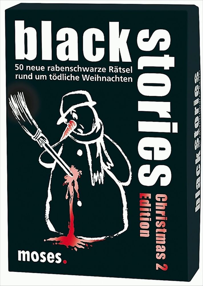 black stories sind 50 sind knifflige, morbide, rabenschwarze Rätsel-Geschichten für Jugendliche und Erwachsene. Durch Fragen, Raten und Tüfteln wird der Tathergang Stück für Stück rekonstruiert. Ein gruseliger Rate-Spaß, der auf keiner Party mehr fehlen darf und Sie sicher auch hoffnungslos in seinen Bann ziehen wird. Die Rätsel stehen auf 50 Spielkarten und sind in einer passend morbiden Geschenkschachtel verpackt.