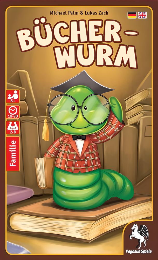 Eine Handvoll Anfangsbuchstaben und eine Kategorie, zu der es Wörter zu finden gilt. Früher oder später gelingt dies jedem, doch in Bücherwurm ist nicht nur Einfallsreichtum, sondern auch Schnelligkeit gefragt. Denn wer hier zuerst mit jeder seiner Handkarten passende Begriffe einleitet, punktet. Die verschiedenen Spielvarianten ermöglichen sowohl das geordnete Nacheinander als auch den turbulenten, offenen Schlagabtausch. Ein rasantes Vergnügen für aufgeweckte Wortakrobaten.