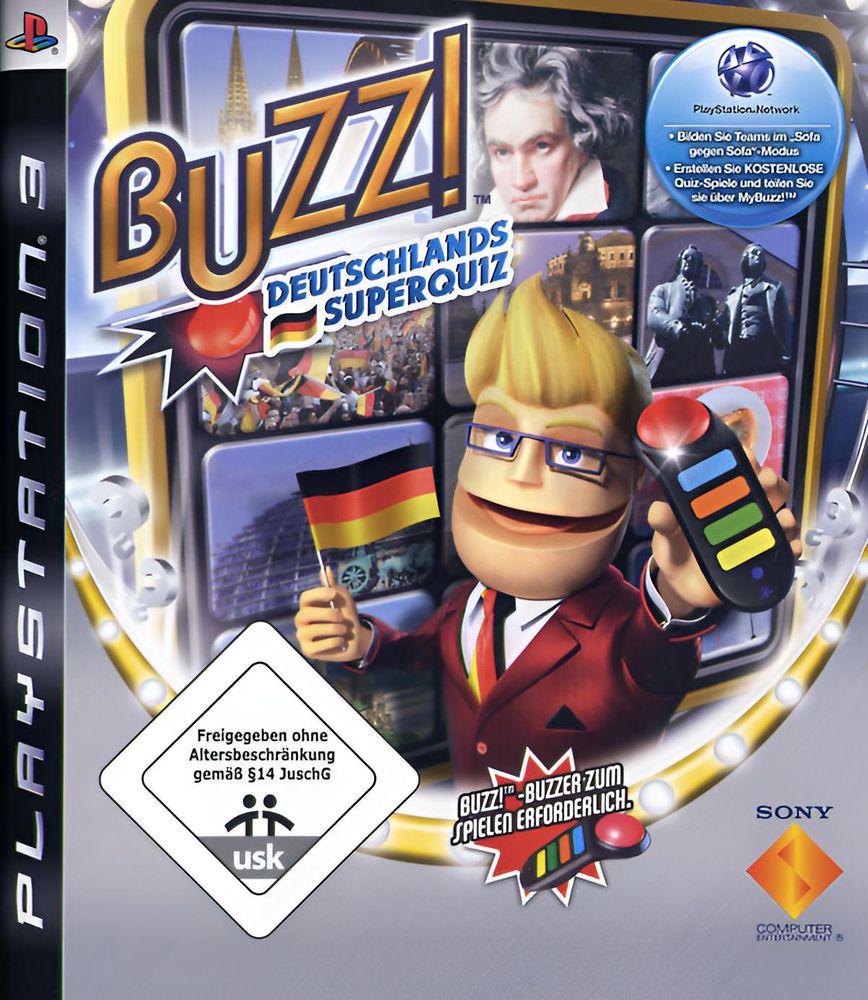 Mit Buzz!: Deutschlands Superquiz erscheint dieses Frühjahr die Version mit den bisher meisten für Deutschland lokalisierten Inhalten! Moderator Buzz stellt Ihnen in verschiedensten lustigen Quizrunden Fragen rund um Deutschland.