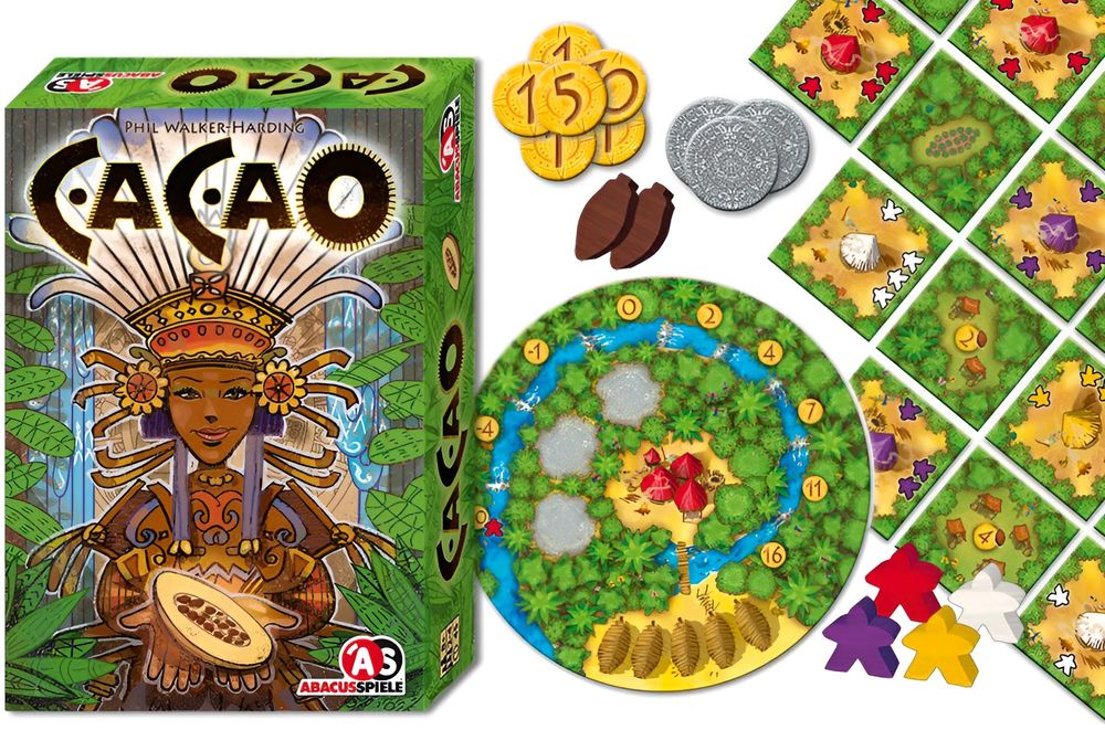 CACAO entführt die Spieler in die exotische Welt der Frucht der Götter. Als Stammeshäuptlinge versuchen sie ihre Völker durch den Handel mit Cacao zu Ruhm und Wohlstand zu führen. Nur wer seine Arbeiter geschickt einsetzt und die Macht der Götter für sich zu nutzen weiß, wird reich belohnt werden. Einfache Regeln und kurze Spieldauer machen CACAO zu einem spannenden Legespiel für die ganze Familie.