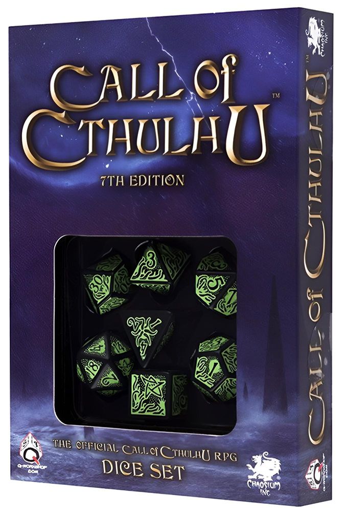 SEVENTH EDITION - The Old Ones ruled the earth aeons before the rise of man. Traces of their cyclopean cities can still be found on remote islands, buried amidst the shifting desert sands, and in the frozen wastes of polar extremes. They sleep now, some deep within the earth or beneath the sea. When the stars are right shall again walk the earth.Official Call of Cthulhu 7th Edition dice set by Q-Workshop contains 7 polyhedral unusual dice, that will add special atmosphere to your gaming sessions.
