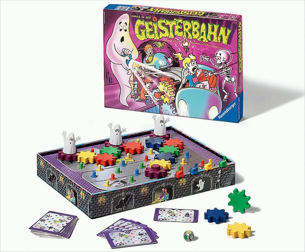 Was für ein schauriger Spaß! Vier Kinder fahren mit der Geisterbahn und lassen sich von den gruseligen Gestalten erschrecken! Doch plötzlich halten die kleinen Autos an und alle Gespenster stehen still. Die Zahnräder sind wild durcheinander geraten! Mutig machen sich die Kinder daran, die Zahnräder wieder an den richtigen Platz zu stecken.Logisches Denken und gutes Kombinieren sind hier gefragt! Und mit etwas Glück tanzen die Gespenster bald wieder!