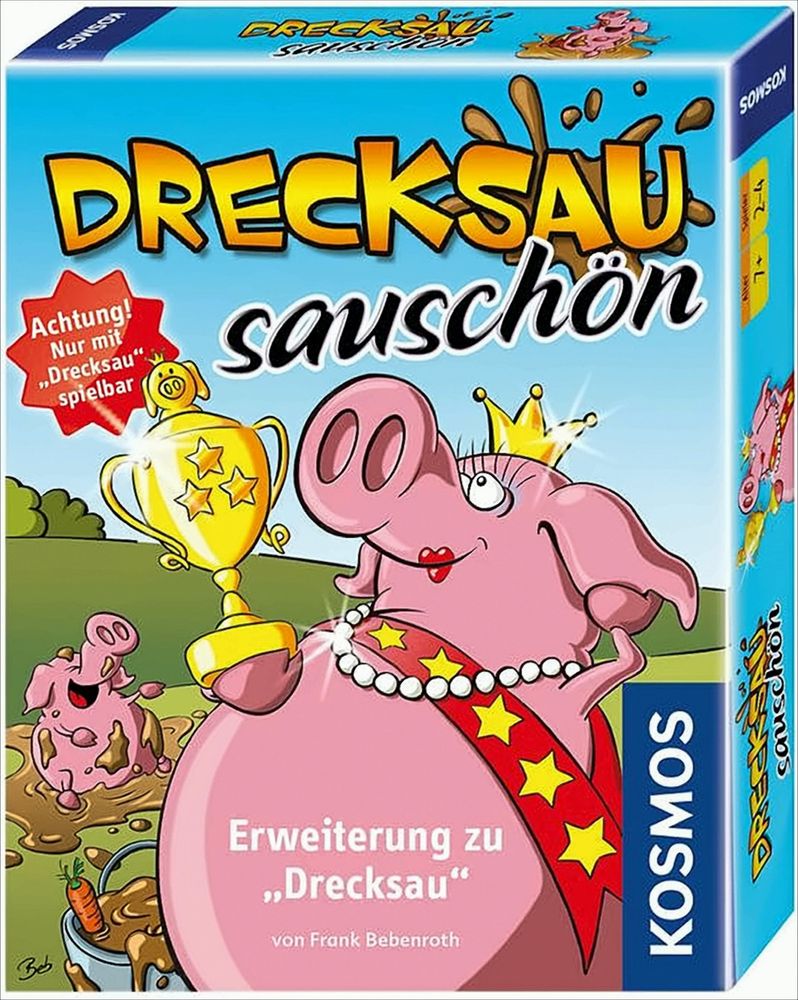 Sauschön oder Matsch – nur eine Schweineparade kann gewinnen. Im saustarken Erweiterungsset können die Spieler jederzeit entscheiden, wie sie ihre Schweine zum Sieg führen. Voll geschminkt und durchgestylt für den nächsten Schönheitswettbewerb oder doch lieber klassisch vollgesaut in der Matschsuhle. Wer hier einen Vogel hat, kommt durchaus glücklicher ans Ziel. Sauschön – die saustärkste Erweiterung, nur spielbar mit dem Drecksau-Kartenspiel!