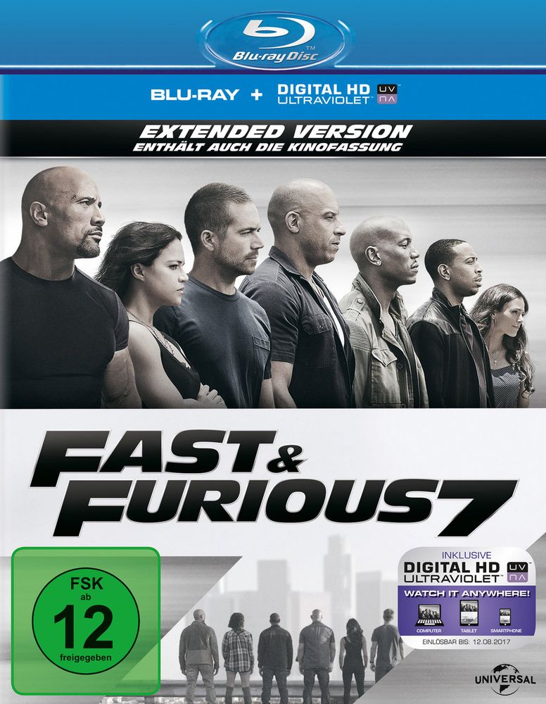 Den unaufhaltsamen Welterfolg des turbostarken Franchise fortsetzend, führen auch in FAST & FURIOUS 7 wieder Vin Diesel, Paul Walker und Dwayne Johnson die Crew an. Im neuen Kapitel der einzigartig erfolgreichen Reihe, das zudem ein Wiedersehen mit den Publikumslieblingen Michelle Rodriguez, Jordana Brewster, Tyrese Gibson, Chris 'Ludacris' Bridges, Elsa Pataky und Lucas Black beschert, führte James Wan Regie. Frische Unterstützung erhielt die Mannschaft von den internationalen Actionstars Jason Statham, Djimon Hounsou, Tony Jaa, Ronda Rousey und Kurt Russell. Und auch Neal H. Moritz, Vin Diesel und Michael Fottrell waren wieder am Start, um Chris Morgans rasantes Drehbuch zu produzieren.