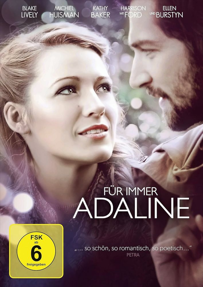 Sie ist jung und hübsch und altert nicht. Der Traum vieler Frauen wird für Adaline Bowman zu einem Albtraum. Kein Blut wie bei Jim Jarmuschs "Only Lovers left alive" hält sie frisch, sondern ein Unfall, den sie 1935 als 29Jährige trotz kurzfristigen Herzstillstand überlebte. In den folgenden acht Jahrzehnten sterben die Menschen, denen sie nahe stand, neue Beziehungen bricht sie ab, aus Angst, ihr Geheimnis könnte entdeckt werden. Das kennt nur ihre Tochter, die sich im Laufe der Dezennien als ihre Mutter oder Großmutter ausgibt (Ellen Burstyn). Eine Aura der Anonymität und Einsamkeit umgibt die Schöne, die permanent Identität, Job und Stadt wechselt. Als sie sich gegen ihre Regeln in den charismatischen Ellis Jones verliebt und bei einem Besuch in seinem Elternhaus die Wahrheit ans Licht kommen könnte, flieht Adaline erneut, zum letzten Mal.