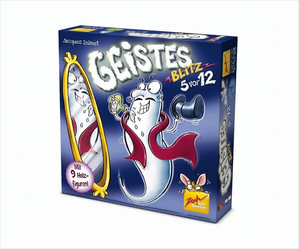 Da stets alle Spieler gleichzeitig am Geschehen beteiligt sind, sorgt das Spiel zur Geisterstunde für hochgradig interaktiven Spaß. Reihum wird vom Kartenstapel eine Karte aufgedeckt, die das Objekt der Begierde bekannt gibt. In fünf Farben stehen neun Objekte zur Wahl – von der Fledermaus bis zur Taschenlampe. Gegriffen wird, was weder in Form noch in Farbe auf der Karte zu sehen oder was passend in Originalfarbe abgebildet ist. Bricht die Geisterstunde an oder taucht der Zauberspiegel auf, warten weitere Herausforderungen auf die Spieler. Manchmal muss auch gerufen werden.