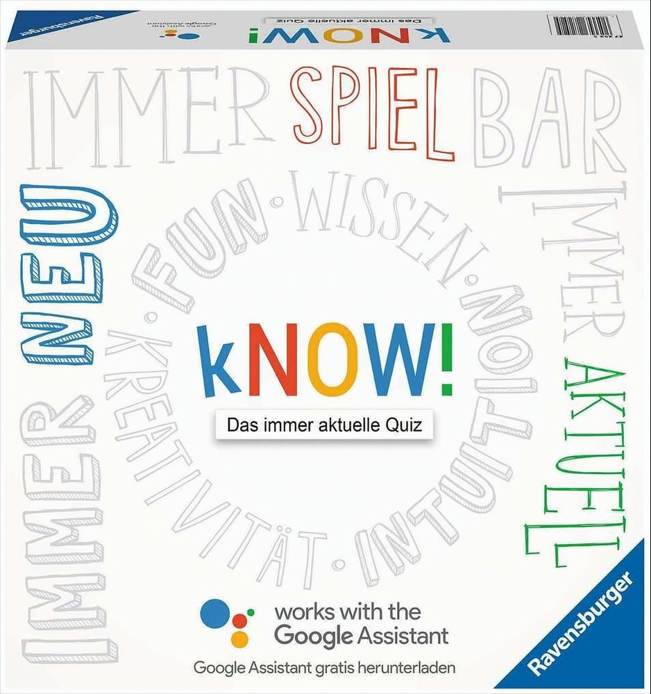 Das kreative Quizspiel kNOW! arbeitet mit dem Google Assistant! Wie weit ist es von hier nach Honolulu? Brauche ich morgen einen Regenschirm? Und wie spät ist es genau jetzt in Sydney? Mit kNOW! kommen Fragen ins Spiel, die es so noch nie in einem Quizspiel gab. Der kostenlose Google Assistant gibt je nach Tag, Zeit und Ort die aktuelle Antwort! Das Gesellschaftsspiel für 2-6 Spieler wurde zusammen mit Google entwickelt und bietet über 1.500 abwechslungsreiche on- und offline-Fragen.