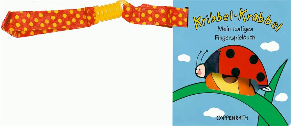 Nun auch für den Buggy: Mit dem rot-gelb gepunkteten Textilbändchen können die beiden Klassiker „Kribbel-Krabbel“ und „Trippel-Trappel“ ganz einfach am Buggy befestigt werden. So geht der große Fingerspielspaß unterwegs nicht verloren.