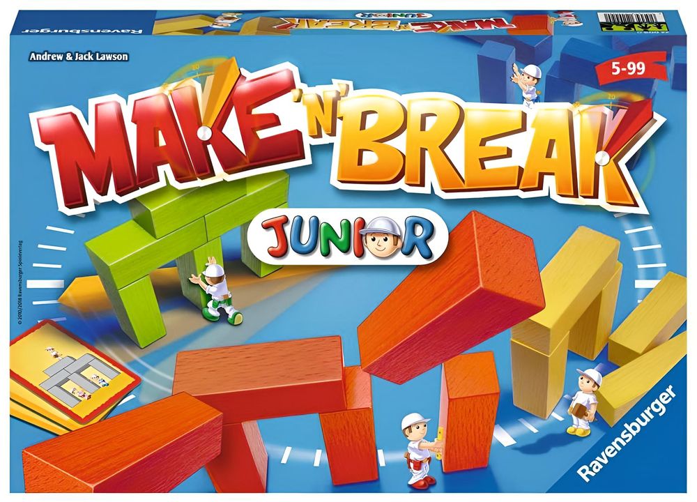 Spielen ältere gegen jüngere Spieler, gibt es verschiedene Möglichkeiten, um die unterschiedlichen Entwicklungsstufen auszugleichen. Entweder die Jüngeren spielen mit den einfacheren Karten mit gelbem Rand und die Älteren wählen die schwierigeren blau umrandeten Karten. Oder die älteren Kinder bauen lediglich mit einer Hand und haben es so etwas schwerer. So ist Make 'n' Break Junior in jeder Runde ein temporeiches und kurzweiliges Spiel.
