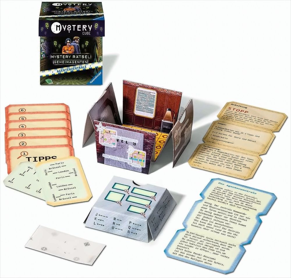 Ob Zuhause, auf der Reise oder während einer Pause zwischendurch, der Mystery Cube "Die Agentenzentrale" passt in jede Tasche und hält spannende Rätsel bereit. Jeder Cube enthält einen detailreich illustrierten Raum und zahlreiche Rätselkarten, die zu kniffeligen Rätseln herausfordern. Ganz wie in einem echten Escape Room müssen hier Elemente aus dem Raum mit den Rätselkarten kombiniert werden, um der Lösung auf die Spur zu kommen. Am Ende wartet eine digitale Überraschung.