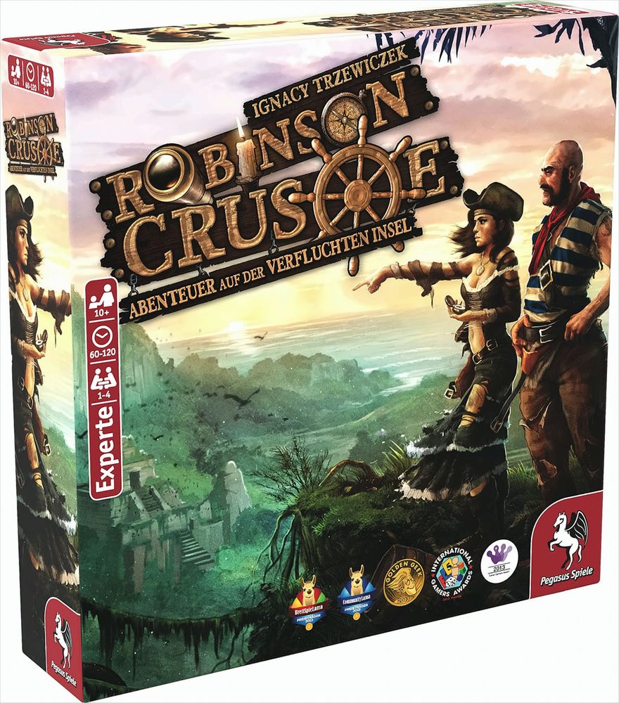 Einer der Spielehits der SPIEL in Essen 2012 war Robinson Crusoe. Das kooperative Abenteuerspiel lässt Spieler die Rolle von Schiffbrüchigen übernehmen, die auf einer unbewohnten Insel gestrandet sind. Ihr Ziel ist es, eine Siedlung zu bauen, sich vor Gefahren zu schützen und ihre Mission zu erfüllen.