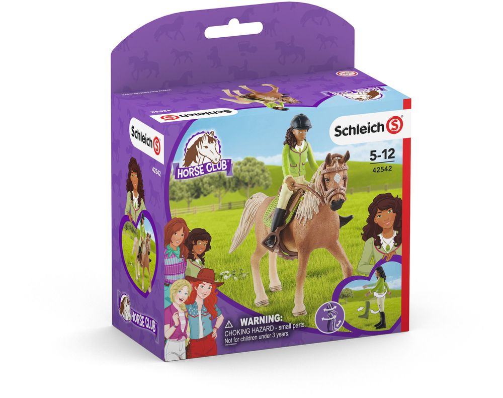 Horse Club Sarah & Mystery von Schleich Horse Club bringt nichts auseinander. Wenn Sarah mit ihrer Araber-Stute über weite Felder galoppiert, durch Bäche watet oder durch den Wald streift, sind die beiden ein Herz und eine Seele. Die Mädchenfigur Sarah trägt einen Reithelm, ist vollbeweglich und kann daher ihrem Pferd Zaumzeug und Zügel anlegen sowie im Sattel sitzen und reiten. Mit dem hübschen gelben Armband zeigt Sarah, dass sie eines der Mitglieder im Horse Club ist.