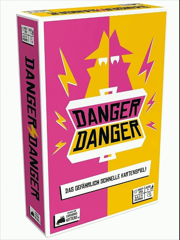 Im gefährlich schnellen Partyspiel Danger Danger zieht und spielt ihr für 60 Sekunden Karten, so schnell ihr könnt. Dann gewinnt das Team mit den meisten Punkten. Was ist der Haken? Der Timer läuft verdeckt. Ihr seht nicht, wie viel Zeit noch übrig ist. Wenn ihr noch spielt und der Timer klingelt, habt ihr verloren! Dank diesem verrückten Kartenspiel aus dem Hause Exploding Kittens waren 60 Sekunden noch die so kurz!