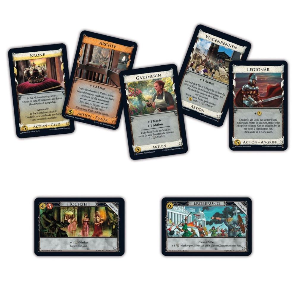 Empires ist eine DOMINION-Erweiterung und kann nur zusammen mit einem Basisspiel oder den Basiskarten gespielt werden.