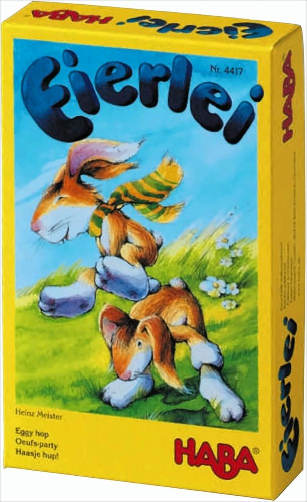 Die Würfelaugenzahl bestimmt, wie oft der jeweils letzte Hase nach ganz vorne hüpft. Wenn es im eigenen Vorrat ein Ei gibt, das die Farbe des am Ende des Zuges vorne stehenden Hasen hat, darf es abgegeben werden. Wer beim Würfeln etwas Glück hat und taktische Überlegungen anstellt, kann bald alle eigenen Eier ablegen. Zwei Würfelspielideen mit etwas Taktik. Für 2-4 Kinder.