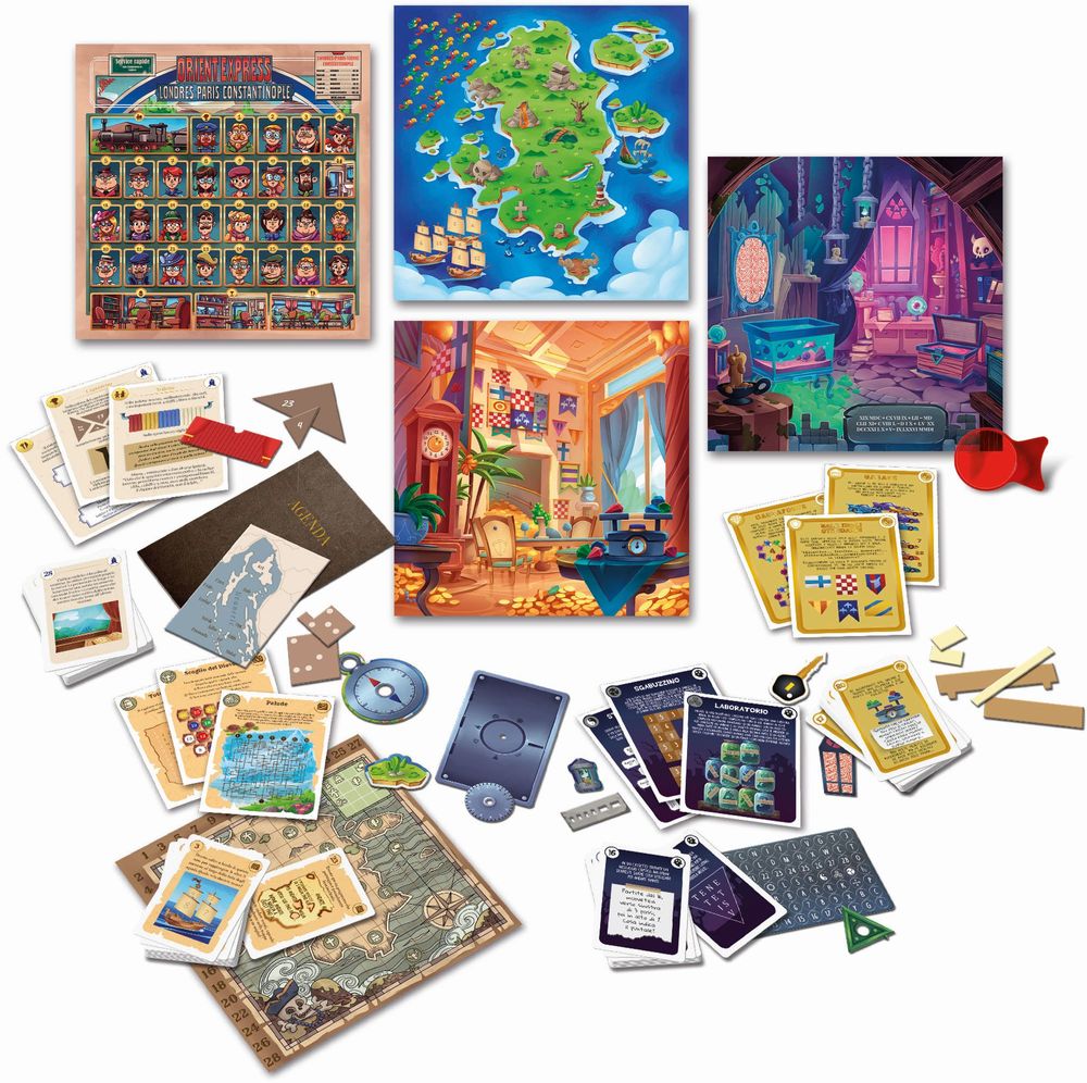 Die Spieler können sich auf 4 Abenteuer begeben und müssen wie in einem Escape Room versuchen, Rätsel zu lösen, um aus den Räumen zu entkommen. Zu jedem Abenteuer gehört ein Karten-Set mit Rätseln, ein Spielbrett mit dem jeweiligen Setting und geheimnisvollen Gegenständen, die den Spielern helfen, im Spiel voranzukommen.