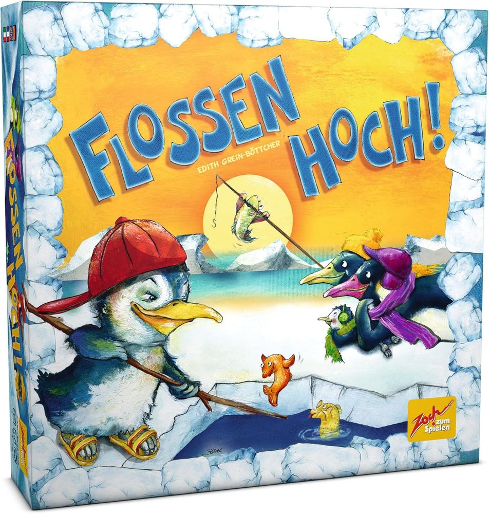 BeobachtungsspielWer fängt die längsten Fische? Schlaue Pinguine merken sich, an welcherStelle sich die größten Brocken im Wasser tummeln und schnappen dannbeherzt zu.Bei Flossen hoch recken 16 Fische ihre Köpfe aus dem Meer. Von obensehen sie alle gleich aus. Aber bald schon entdecken die Spieler denfeinen Unterschied in Farbe und Länge. Wer den immer wiederentwischenden Flossenträgern auf der Spur bleibt, zieht unter den staunenden Blicken seiner Mitspieler so manchen kapitalen Hecht an Land.