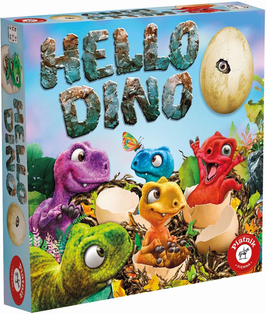 Das saurierstarke Memo Spiel. Der dreidimensionale Spielplan zeigt zehn, auf Farbsektoren versteilte Nester, in welche die 5 Dino-Eier mit den Babysauriern gelegt werden. Ein Farbwürfel bestimmt die folgenden Aktionen: Ein Ei in ein beliebiges Nest der gewürfelten Farbe versetzen, ein Ei aus dem gewürfelten Farbbereiche in einem andern umsiedeln, oder bei einem Ei im gewürfelten Farbsektor unter die Schale gucken, um herauszufinden, ob der Babysaurier und der Farbsektor farblich zueinander passen. Nur dann gibt es eines von fünf begehrten Dino-Plättchen.Wird das Pfeilsymbol gewürfelt, muss der transparente obere Teil des Spielfeldes gedreht werden, und schwupp sind alle Babysaurier um einen Farbsektor weiter gerückt. Da ist Köpfchen gefragt!