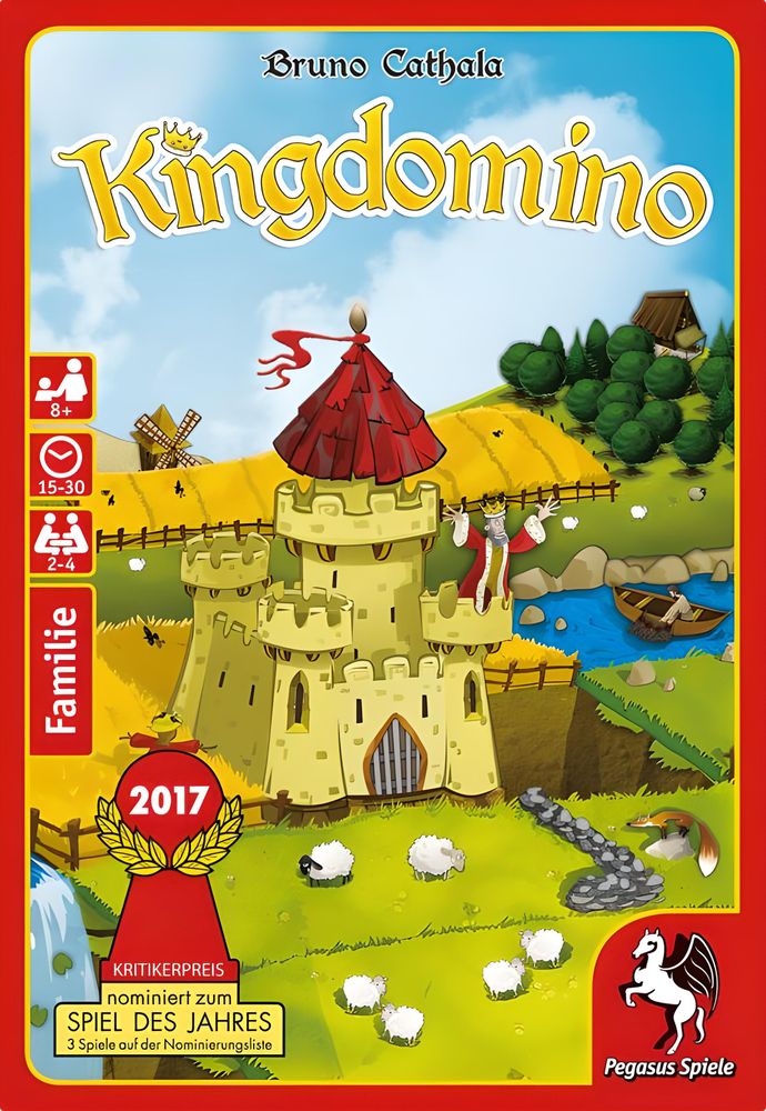 Du bist Herrscher eines Königreichs und auf der Suche nach Ländereien, um dein Reich zu vergrößern. Es gilt, zum richtigen Zeitpunkt der richtigen Länderei habhaft zu werden. Dann steht dir nichts mehr im Wege, das prestigeträchtigste aller Königreiche zu errichten! Je größer deine verschiedenen Ländereien sind und je mehr Häuser sich in ihnen befinden, desto mehr Prestigepunkte erhältst du am Spielende dafür. Doch bist du in der einen Runde zu gierig, haben deine Mitspieler in der nächsten Runde die bessere Auswahl. Und manchmal lohnt es sich, ihnen lieber eine bestimmte Länderei vor der Nase wegzuschnappen, so dass ihnen viele Punkte entgehen, als ein Ländereien-Plättchen zu nehmen, das dir selbst nur wenige Punkte gebracht hätte. Geschicktes Anbauen und ein wachsames Auge auf die Königreiche der Mitspieler sind hier der Schlüssel zum Sieg! Kingdomino ist ein schnelles Familienspiel ab 8 Jahren mit einfachen Regeln, die auf dem beliebten Spielprinzip von Domino beruhen. Inhalt: 48 Dominosteine 4 Startsteine 4 3D-Schlösser 8 Holzfiguren 1 Stoffbeutel 1 Anleitung