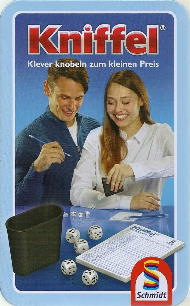 Alles drin ohne viel Drumherum. Mit Würfeln, einem Becher und einem Block ist hier alles zum Kniffeln bereit. Und das in der schönen Metalldose. Da spielt selbst der Preis mit, der sich hier ganz klein macht. Und los!