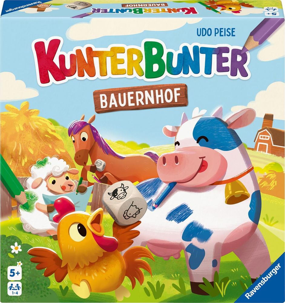 Kunterbunter Bauernhof – Würfelspiel zum Ausmalen verbindet spielerischen Würfelspaß mit kreativer Gestaltung. Kinder ab 5 Jahren entdecken eine fröhliche Bauernhofwelt, in der Tiere, Traktoren und Felder nach und nach mit Farbe gefüllt werden. Jeder Wurf entscheidet, welches Feld bemalt oder ergänzt wird – so entsteht Schritt für Schritt ein individuelles Kunstwerk.