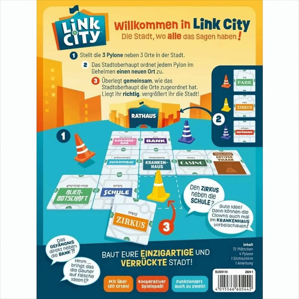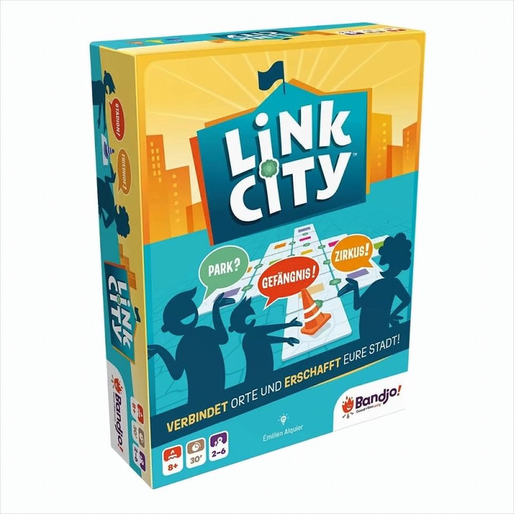 Link City ist ein Partyspiel, in dem die Spieler gemeinsam über sechs Runden eine Stadt erschaffen. In jeder Runde übernimmt eine andere Person die Rolle des Stadtoberhaupts, das nur eine Mission kennt: die Stadt zu erweitern! Aber … werden die Mitspieler dieselben Ideen haben wie das Stadtoberhaupt? Nur zusammen werden die Spieler es schaffen, so viele Orte wie möglich zu verbinden und eine einzigartige und verrückte Stadt zu bauen.
