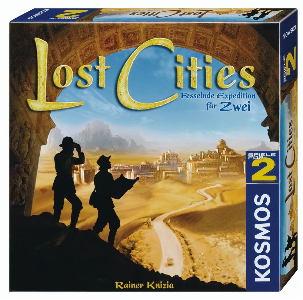 Ein prächtig illustriertes Karten-Abenteuer für zwei Glücksritter. Risiko, Entdeckerfreude, Nervenstärke und das Glück des Tüchtigen auf der Suche nach versunkenen Städten sind Spielkomponenten, die es mehr als wahrscheinlich machen, daß "Lost Cities" zu den großen Spiel-Entdeckungen des Jahres 1999 gezählt wird. Einfach, schön und spannend. Mehr als hitverdächtig.
