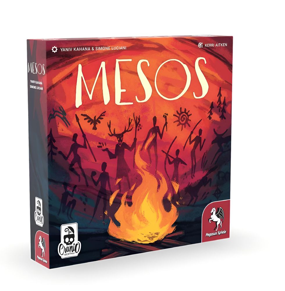 Im Mesolithikum, der Mittelsteinzeit, schlossen sich die Menschen erstmals zu Stämmen zusammen und teilten die Aufgaben, wie jagen oder bauen, unter sich auf. So sicherten sie nicht nur ihr Überleben, sondern es entstanden auch erste Siedlungen. In Mesos gründen die Spielenden ihre eigenen Stämme, indem sie neue Mitglieder dazugewinnen, die je eine Aufgabe übernehmen. Durch die Auswahl der richtigen Personen bereiten sie sich auf die Ereignisse vor, die während der drei Zeitalter auf sie zukommen.