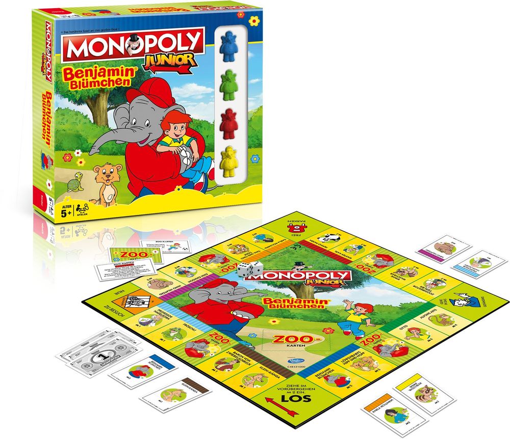 Bei diesem elefantösen MONOPOLY JUNIOR machst du mit Benjamin Blümchen einen spannenden Spaziergang durch den Neustädter Zoo! Du lernst ihn und seine Welt und vor allem die zahlreichen Zootierkinder kennen. Du kannst die Felder erwerben, auf denen sie sich aufhalten, oder du zahlst Miete, wenn das Feld schon besetzt ist.