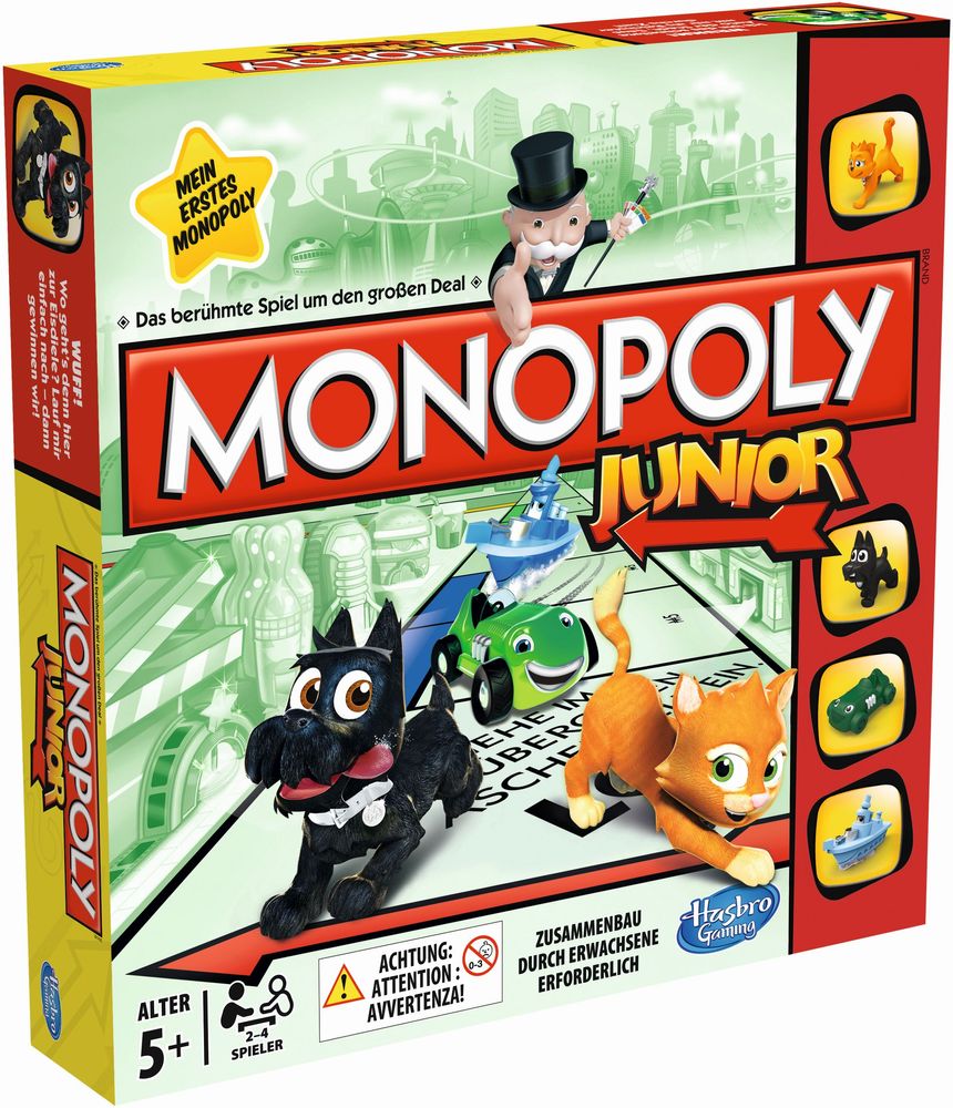Monopoly ganz kindgerecht und kinderleicht. Monopoly Junior führt die Jüngsten spielerisch an den Umgang mit Geld und Zahlen heran und bringt zugleich jede Menge Spielspaß ins Kinderzimmer. Mit supersüßen Spielfiguren.