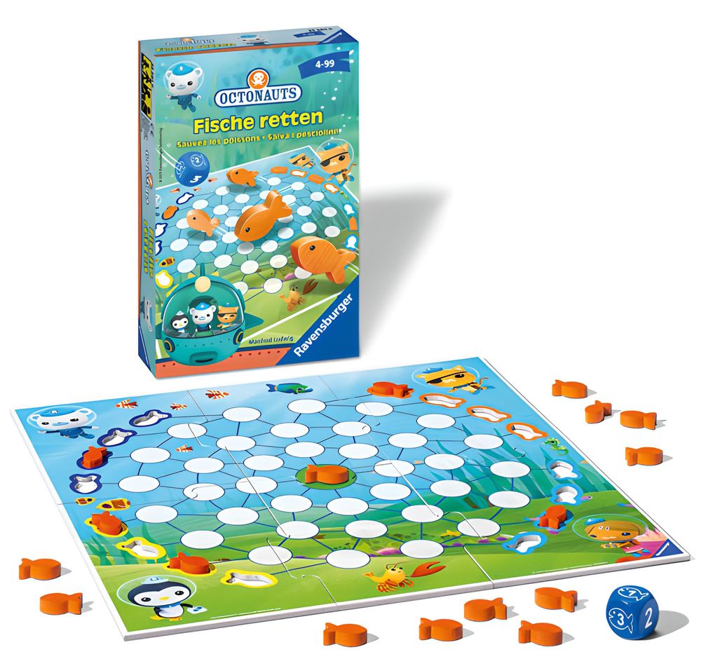Obwohl sich ein gewaltiger Sturm zusammenbraut, spielen die kleinen Fische unbekümmert im Wasser. Sie müssen schnellstens in Sicherheit gebracht werden. Mit viel Glück können die Spieler bei diesem spannenden Würfelspiel alle Fische retten.