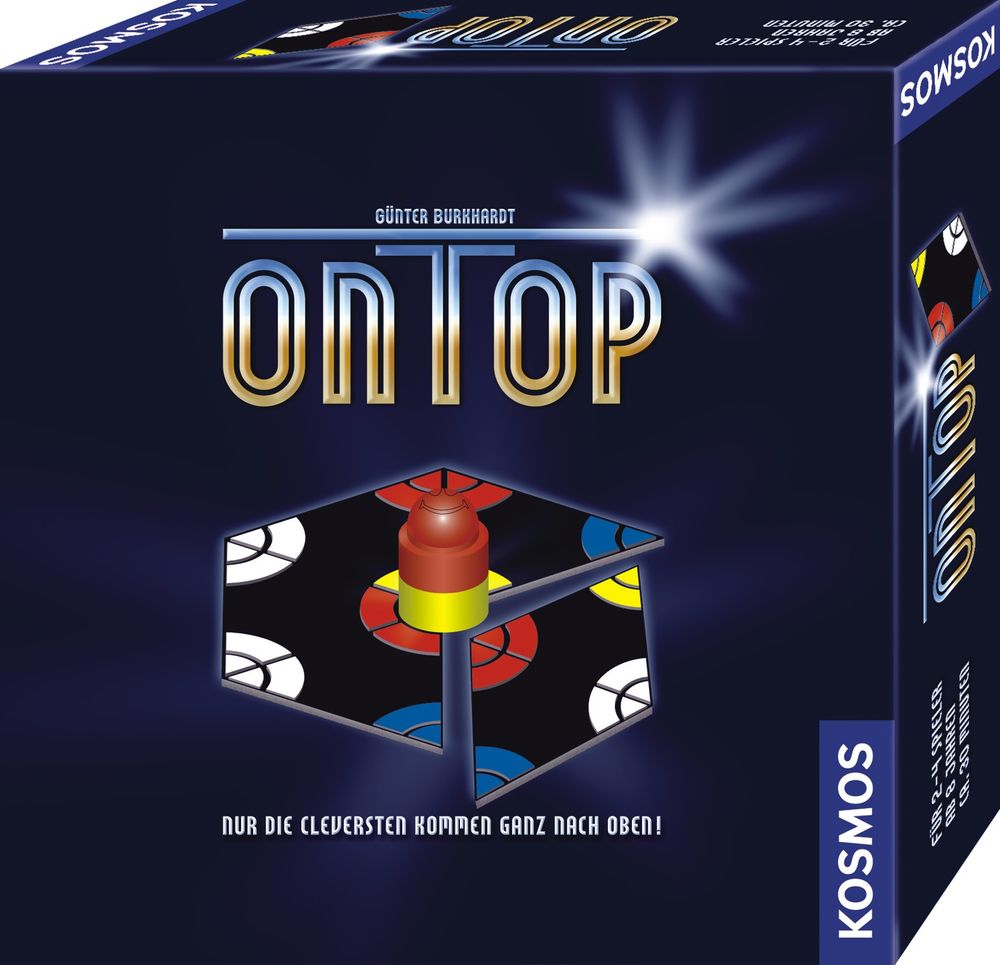 Wer clever legt, liegt oben auf! In diesem herrlich spannenden Legespiel geht es darum, die Legeteile geschickt anzulegen, und zwar so, dass die eigene Farbe in den mehrfarbigen Kreisen am häufigsten vertreten ist. Denn sobald sich ein Kreis schließt, werden die Spielsteine der beteiligten Spielerfarben aufeinander gestapelt. Wer mit seiner Farbe den Kreis dominieren kann, liegt on top. und erzielt als Einziger Punkte - je höher der Turm, desto mehr Punkte. Natürlich wissen das auch die Mitspieler - und vermasseln einem nur allzu gerne den Zug. Ein lockeres und zugleich cleveres Legespiel, bei dem es oft anders kommt, als man denkt. Spielspaß pur!Inhalt: Spielplan, 34 Spielplättchen in Rautenform, 10 Dreiecksplättchen, 84 Spielsteine