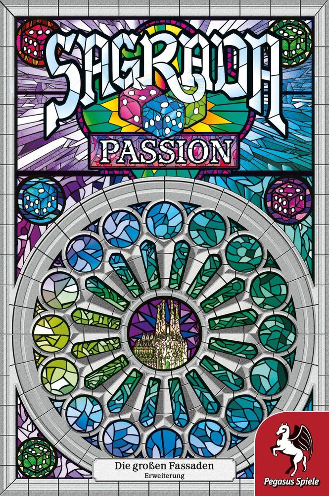 Sagrada: Passion ist eine modulare Erweiterung, deren drei Module in beliebiger Kombination zum Grundspiel hinzugefügt werden können. Inspirationskarten geben den Spielern individuelle Fähigkeiten. Wertvolle, schimmernde Würfel dürfen neben jeder beliebigen Farbe platziert werden, haben aber besondere Baukosten. Neue öffentliche Aufträge erfordern eine symmetrische Bauweise.