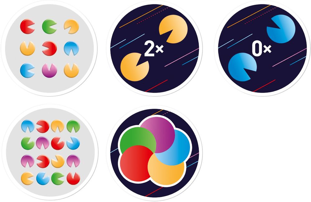 Und so geht’s: Eine Karte wird aufgedeckt und die Rückseite der Karte auf dem Nachziehstapel legt fest, wonach die Spieler suchen. Entweder die häufigste Farbe, auf welchen Kreis zwei Kreisöffnungen zeigen oder auf welchen Kreis keine Öffnung zeigt. Wer es weiß, der nennt sofort die gesuchte Farbe! Da lautet die Devise: Genau hinsehen und schnell sein, denn man hat nur einen Versuch! Das sorgt für Spaß und Spannung bis zum Schluss! Und weil‘s so schnell war, wird gleich noch eine Runde gespielt!