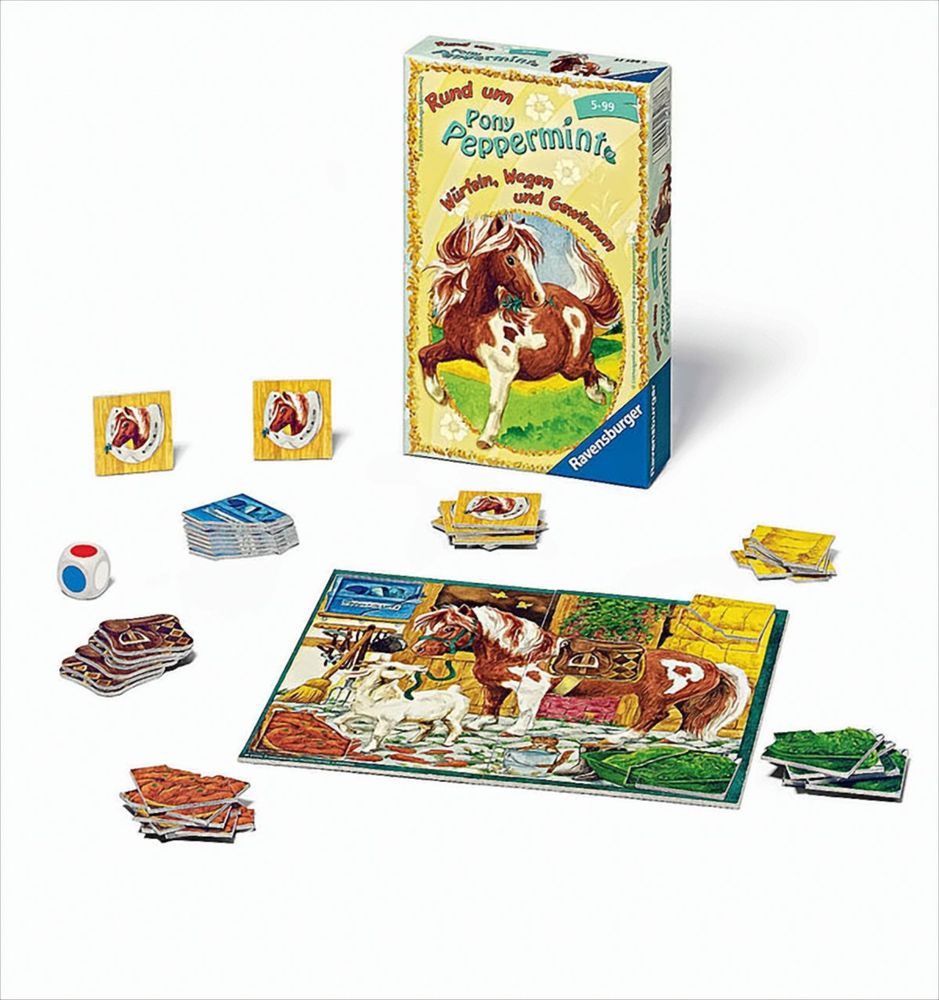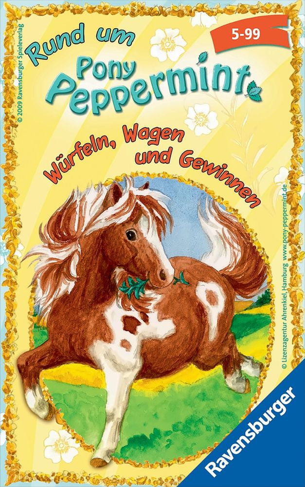 Peppermint ist ein Pony zum Liebhaben! Alle kümmern sich gerne um ihn, wollen ihn striegeln, satteln und füttern. Mit Würfelglück und Mut zum Risiko kann man Pony Peppermint bestens versorgen und viele Peppermint-Orden gewinnen! Aber: Wer hier zuviel wagt, geht am Ende leer aus!