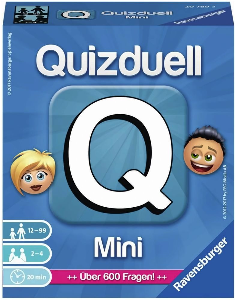 Kleine Schachtel - große Wirkung! Ob als Ergänzung zum Brettspielhit Quizduell oder als eigenständiges Spiel: Über 600 Fragen erwarten Sie und garantieren viele Stunden Spielspaß für Ratefüchse! Wer hat den Dreh raus und stellt auf der Tippscheibe die richtige Antwort ein? Wer punktet in den Originalkategorien? Und wer trägt den Sieg davon?
