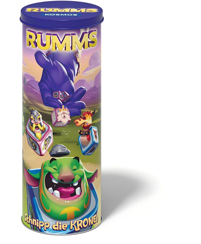 Schnippen fürs Königreich! In einem spannenden Zweikampf um die Krone tritt das blaue gegen das rote Königreich an. Dabei wird jedes Team von einer starken Truppe unterstützt. Während Ritter und Spione den Spielern beim Angriff helfen, verteidigen Trolle und Drachen ihren König rund um die eigene Ritterburg. Welche Formation ist wohl die beste, um den Gegner zu besiegen? Dank einfacher Regeln legen Spieler ab 7 Jahren sofort los. Sie schnippen und versuchen, die gegnerischen Würfel von der Matte zu befördern. Gewonnen hat, wer den König des anderen Teams zuerst von der Spielmatte schnippt. Ein Muss für alle Würfel-Fans! Das actionreiche Familienspiel in der Metalldose.