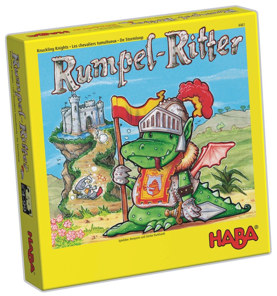 Inhalt: 32 Ritter (in 4 Farben), 1 Spielplan mit Burgturm und Geheimtu?r, 8 Rumpeltaler, 1 Augenwürfel mit Sondersymbol, 1 Spielanleitung.