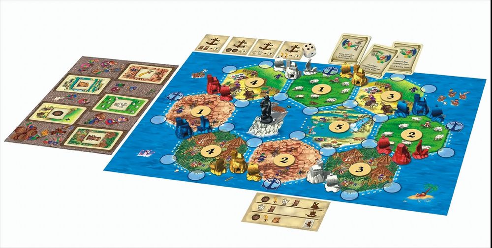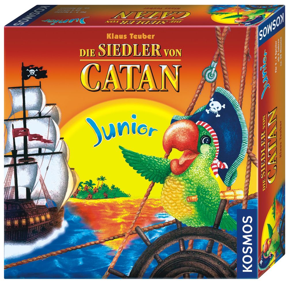 Wer hat nicht schon von Catan. gehört? Bislang war dieses Spielvergnügen älteren Spielern ab 10 Jahren vergönnt. Mit dieser Junior-Ausgabe können nun endlich auch jüngere Spieler die berühmte Insel besiedeln. Genauer gesagt sind es die catanischen Inseln, auf denen die Kinder als Piraten Schlupfwinkel aufbauen. Hierzu werden typische Piraten-Gegenstände wie Rumfässer, Säbel und Schätze benötigt, die auf den verschiedenen Inseln zu finden sind. Aber Vorsicht vor dem Geisterpiraten, der auf den Inseln sein Unwesen treibt!