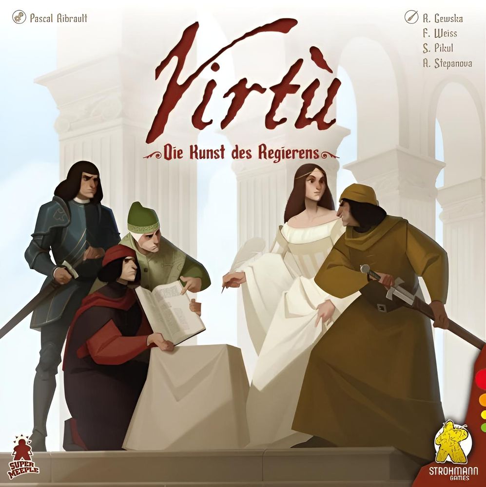Die Zeit des Umbruchs ist gekommen. Das Mittelalter endet und die Moderne wird geboren. Für diejenigen an der Macht ist es Zeit, zu handeln. Deine Herrscherfamilie muss ihre Stellung wahren – und ihre Geschicke liegen in deinen Händen! Virtù greift die Kunst des Regierens auf und nutzt einen einzigartigen Mechanismus: Dein Tableau zeigt ein Aktionsrad, mit dem du deine Aktionen wählst. Im Laufe des Spiels veränderst du es mit Karten und passt es so an deine Strategie an. Finanziere als Schirmherr Gelehrte und Künstler, positioniere Truppen und Agenten, um die Kontrolle über Städte zu übernehmen, oder wähle einen diplomatischen Weg, deinen Herrschaftsbereich zu vergrößern und Prestige zu erlangen. Triff einfallsreiche und mutige Entscheidungen und mache deine Herrscherfamilie zur größten Italiens!