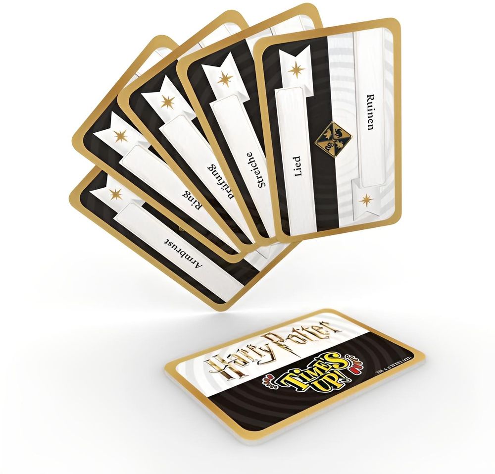 Das beliebte Partyspiel Time’s Up! mit Begriffen rund um die Zaubererwelt von Harry Potter. Drei Runden lang werden in zwei Teams Begriffe erklärt: zunächst wie man möchte, ohne das Wort direkt zu nennen, danach mit nur einem einzigen Wort und zuletzt mit Pantomime. Das Besondere daran: In jeder Runde sind dieselben Begriffe zu erraten. Time’s Up! Harry Potter bietet drei verschiedene Schwierigkeitsgrade (Zauberschüler, Professor und Schulleiter) und ist damit sowohl für Einsteiger als auch für echte Fans geeignet.