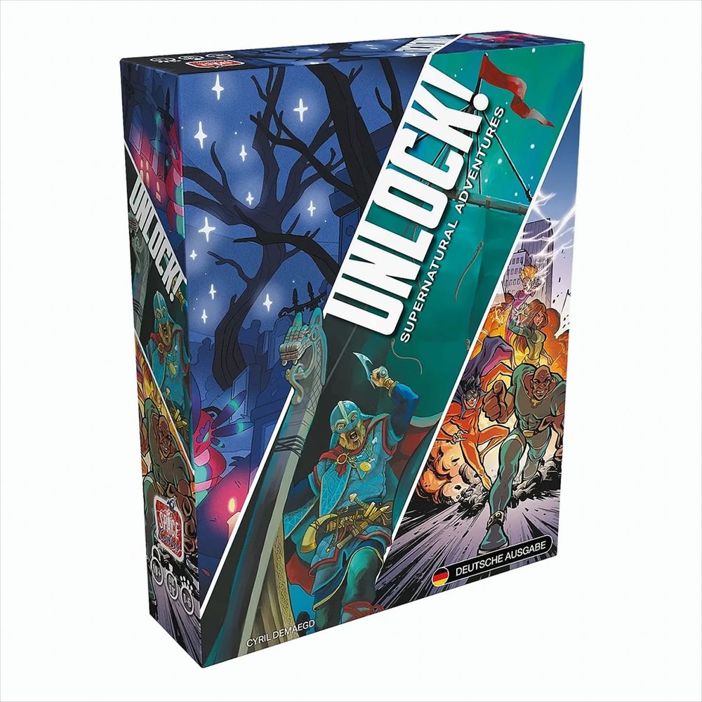 Unlock! Supernatural Adventures Adventures ist die zwölfte Box der beliebten Escape-Reihe Unlock!. Die Box enthält drei übernatürliche Abenteuer. In Nova City in Gefahr bekämpft ihr als Team von Superhelden das Verbrechen und die Ungerechtigkeit in Nova City. Könnt ihr den Gefahren auf den Grund gehen, die die Stadt bedrohen? Einmal im Jahr am Día de los Muertos treffen die Welten der Lebenden und der Toten aufeinander – die beste Gelegenheit, den verlorenen Talisman eurer Familie zu suchen! In Ragnarök seid ihr Leif, ein stolzer Krieger der Wikinger. Stecht in See und entdeckt neue Länder, um Ruhm und Ehre zu erlangen. In Live-Escape-Rooms werden die Teilnehmer eingeschlossen und müssen es innerhalb von 60 Minuten schaffen, den Raum zu verlassen. Die Spiele der Unlock!-Reihe lassen euch dieses kooperative Erlebnis, unterstützt durch eine App, am heimischen Spieltisch erleben. Die ultimative zwölfte Box der preisgekrönten Escape-Reihe Unlock! Spannende Rätsel und Geschichten zu drei übernatürlichen Abenteuern Must have für alle Fans von Escape-Room-Feeling für zu Hause Erlebt einzigartige Abenteuer als Superhelden, Wikinger oder zwischen den Welten der Lebenden und Toten