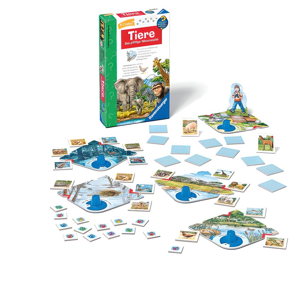 Wie kommen Krokodilbabys zur Welt? Ist ein Hamster nachts wach? Wo ist der Igel im Winter? Mit Wissen, etwas Glück und gutem Gedächtnis sammeln die Kinder die meisten Chips. Nebenbei erfahren sie Spannendes über die Tierwelt.