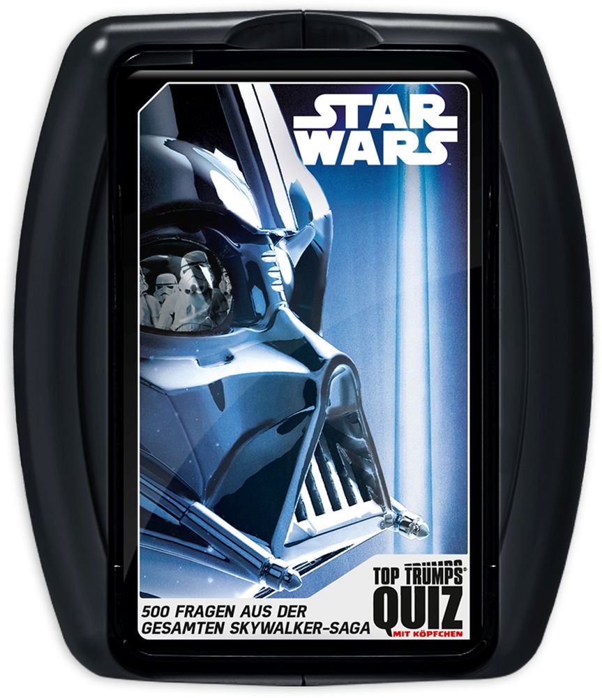 Star Wars ist seit mehr als zehn Jahren durchgehend die Nummer 1 Lizenz im deutschen Spielwarenmarkt und auch TOP TRUMPS QUIZ kommt natürlich nicht ohne aus! Fans der Filme und Serien können sich nun auf eine neue Herausforderung gefasst machen: In 500 Fragen auf 100 Karten können sie ihr Wissen über Star Wars beweisen oder sogar Neues dazulernen. Durch die robuste Klappbox kann das Quiz jederzeit und überall gespielt werden.