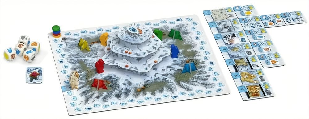 Und es gibt ihn doch! Der legendäre Yeti ist unvorsichtig geworden und hat Spuren hinterlassen. Als abenteuerlustige Bergsteiger begeben sich die Spieler auf seine Fährte. Würfelnd heuern sie Sherpas an, um den eindrucksvollen Yeti-Berg zu erklimmen, und stellen Zelte auf, um bis zum nächsten Zug in der Höhe verweilen zu können. Oder sie kratzen all ihr Geld zusammen, um ihre Chancen mit neuen Ausrüstungsgegenständen zu verbessern. Doch Punkte bekommen sie vor allem, wenn sie auf die Spuren des Yetis stoßen – und je höher sie dabei gelangen, desto wertvoller der Fund. Da kann man nur hoffen, dass auch das Wetter mitspielt, denn wenn zu viel Schnee fällt, wird die Suche aller Spieler ausgebremst.
