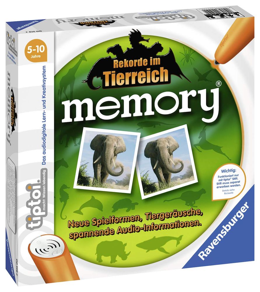 Welches Tier macht die lautesten Geräusche? Und gibt es ein Tier, das giftiger ist als die Vogelspinne? tiptoi erweitert den beliebten Klassiker memory und macht ihn lebendig. Die Spieler lernen durch das tiptoi memory Rekorde im Tierreich eine Menge wissenswerte und kuriose Fakten zu den abgebildeten Tieren und ihren tierischen Rekorden. Tippen die Kinder auf Entdecken und einzelne Karten, erfahren sie rekordverdächtige Tatsachen über Delfin, Känguru und Co. Der intelligente tiptoi Stift erweitert den beliebten Klassiker um drei zusätzliche Audio-Spielformen: Als Helfer unterstützt er die ungeübten Spieler zum Beispiel durch Audio-Hinweise dabei, die richtigen Karten zu finden. Im Sound memory sollen die Kartenpaare durch Tierlaute oder Geräusche gefunden werden. Gut zuhören! In der Spielvariante Herausforderung gibt der Stift pro Karte jeweils einen Hinweis. Diesen Tipp müssen sich die Spieler merken und kombinieren. Denn erst nach mehreren Tipps wird sich herauskristallisieren, welches Tier gemeint ist. So stellt tiptoi memory Rekorde im Tierreich auch für ältere Spieler oft eine Herausforderung dar. Ob allein oder gemeinsam gespielt, tiptoi und memory bringen noch mehr Spiel- und Lernspaß. Wichtig: Funktioniert nur mit tiptoi Stift. Stift muss separat erworben werden.