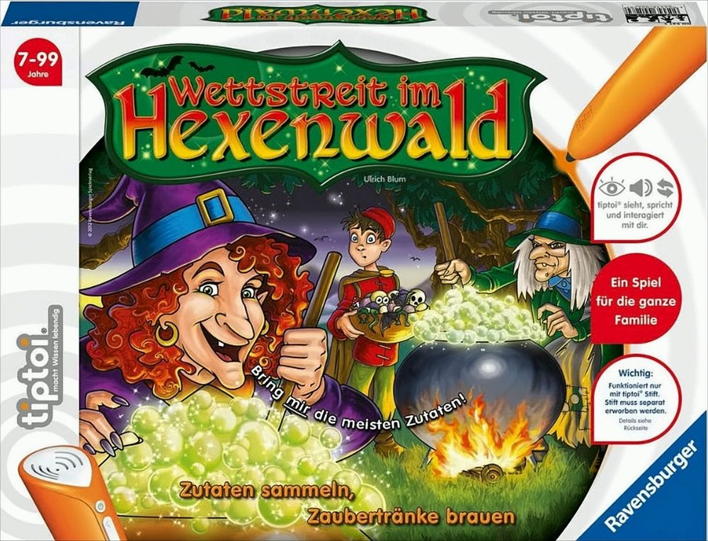 tiptoi für die ganze Familie. Stimmungsvolle Spielwelt mit vielen Geräuschen. Logisches Vorgehen und Kombinieren werden gefördert. Mit tiptoi erlebt die ganze Familie magischen Spielspaß. Die Spielenden mischen beim großen Wettstreit der Zauberkundigen mit. Wer seine Kobolde geschickt einsetzt und die meisten Zutaten sammelt, wird Meisterlehrling. Aber Vorsicht, denn nicht alle Zauberkundigen sind freundlich.