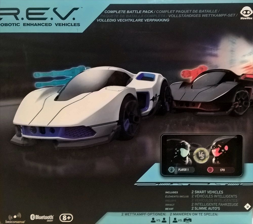 Jedes R.E.V. Set enthält 2 Fahrzeuge. Alles, was du brauchst, ist ein Smartphone und die R.E.V. App. Fahre, feuere auf deine Gegner und besiege sie in einer Serie von Wettkämpfen, um neue Waffen und Funktionen für dein Fahrzeug freizuschalten!