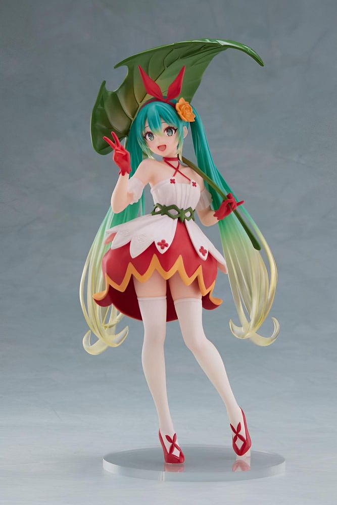 Die Statue zeigt Hatsune Miku in einem an ein Märchen erinnernden Outfit mit verspielten Akzenten und sorgfältig modellierter Silhouette. Dank der hochwertigen PVC-Ausführung kommen Farbnuancen, Faltenwurf und Accessoires besonders klar zur Geltung und verleihen der Figur eine lebendige Ausstrahlung.